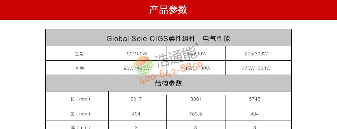 汉能 Global Solar PowerFLEX CIGS柔性太阳能电池组件详细参数