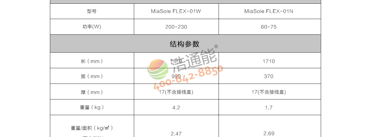汉能 MiaSole FLEX CIGS 柔性太阳能电池组件详细参数